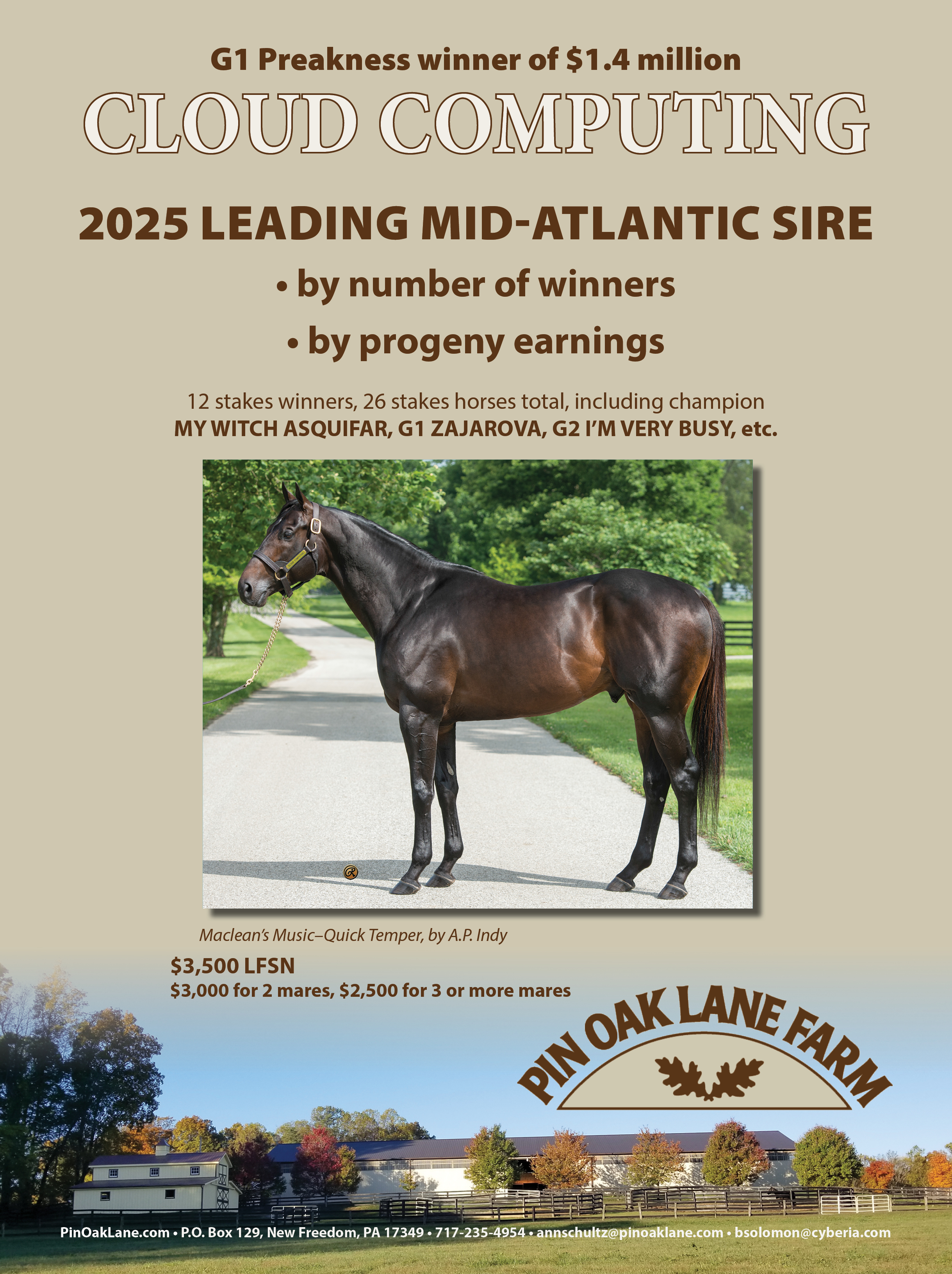 Cloud Computing will stand at William Solomon’s Pin Oak Lane Farm in New Freedom, Pa., for the 2026 breeding season.